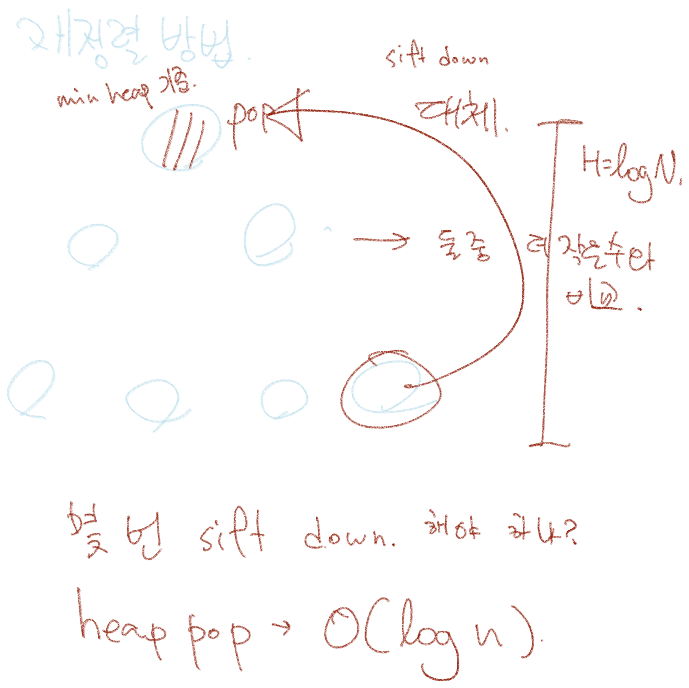 heapq.heappop() ≒ dequeque (root node를 pop) -> 재정렬