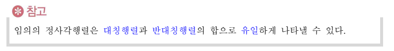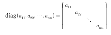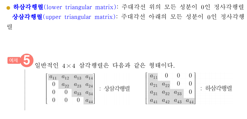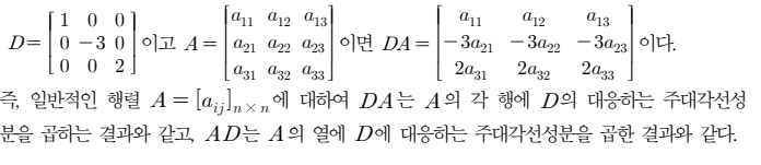 대각선행렬(diagonal matrix) : 주대각선성분 이외의 모든 성분이 0인 정사각행렬
