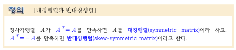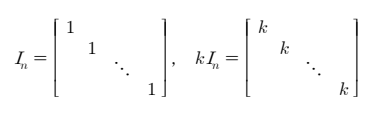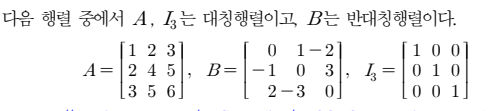 단위행렬(identity matrix): 주대각선성분이 모두 1인 행렬 In
