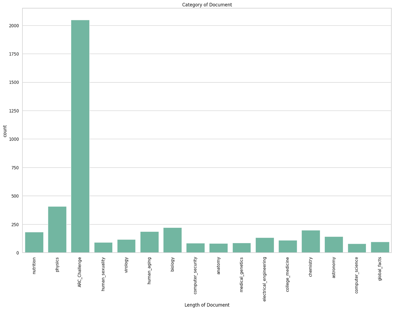 conceptual_physics, high_school_physics, college_physics 등을 한개의 분야(physics)로 통합할 경우 'ARC_Challenge' 외 15개 분야가 있음을 알 수 있었다.