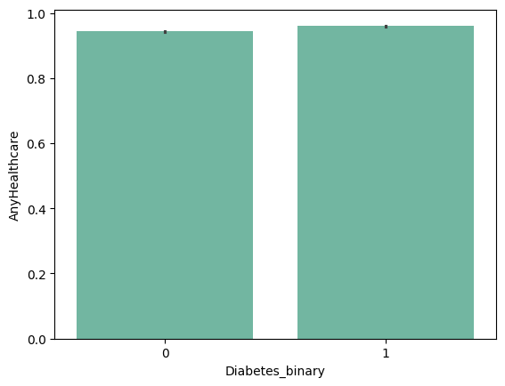 - AnyHealthcare : Have any kind of health care coverage, including health insurance, prepaid plans such as HMO, etc. 0 = no 1 = yes