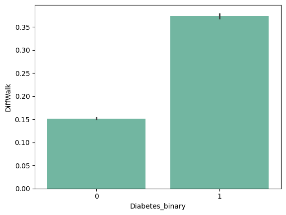 - DiffWalk : Do you have serious difficulty walking or climbing stairs? 0 = no 1 = yes