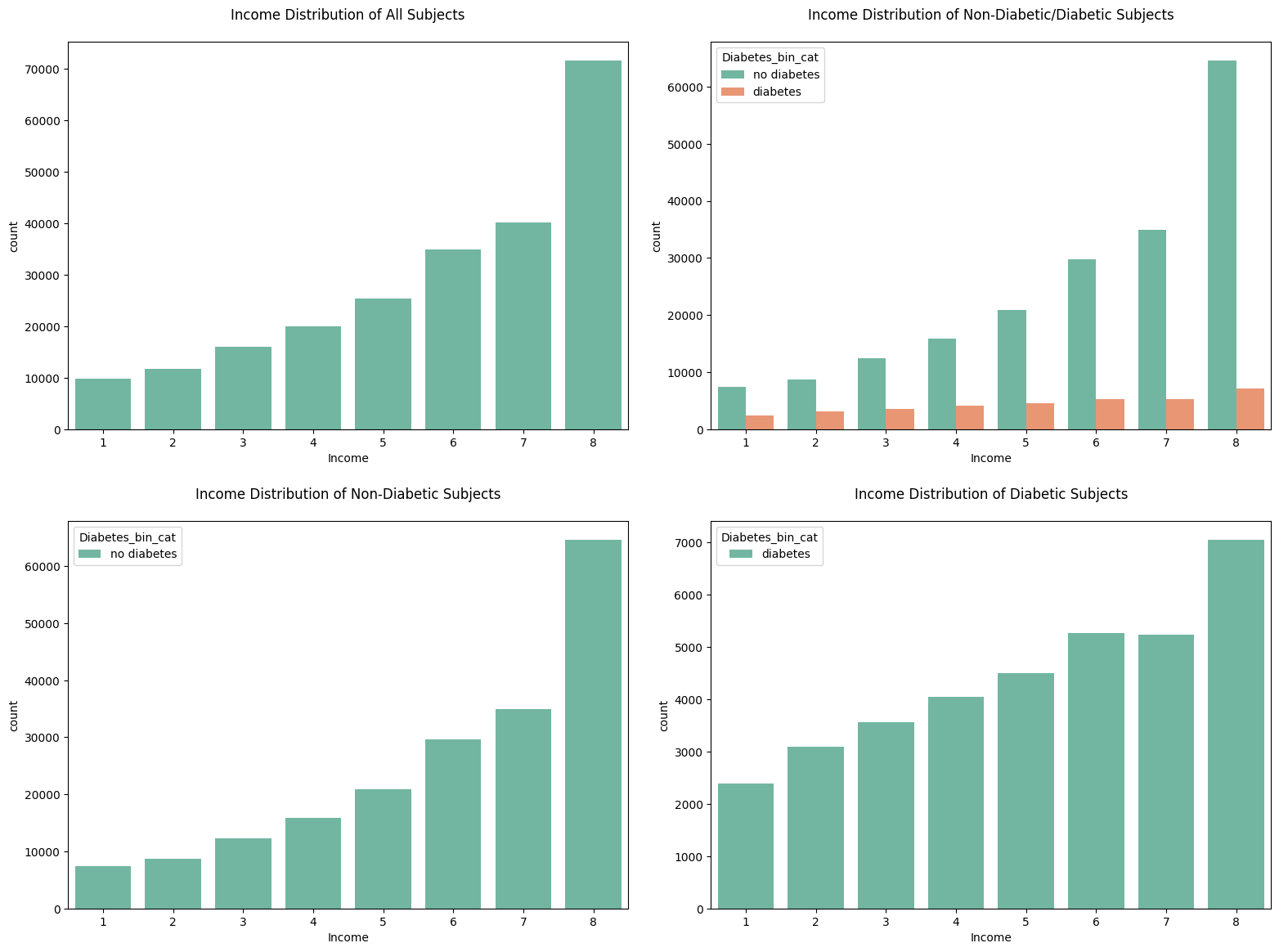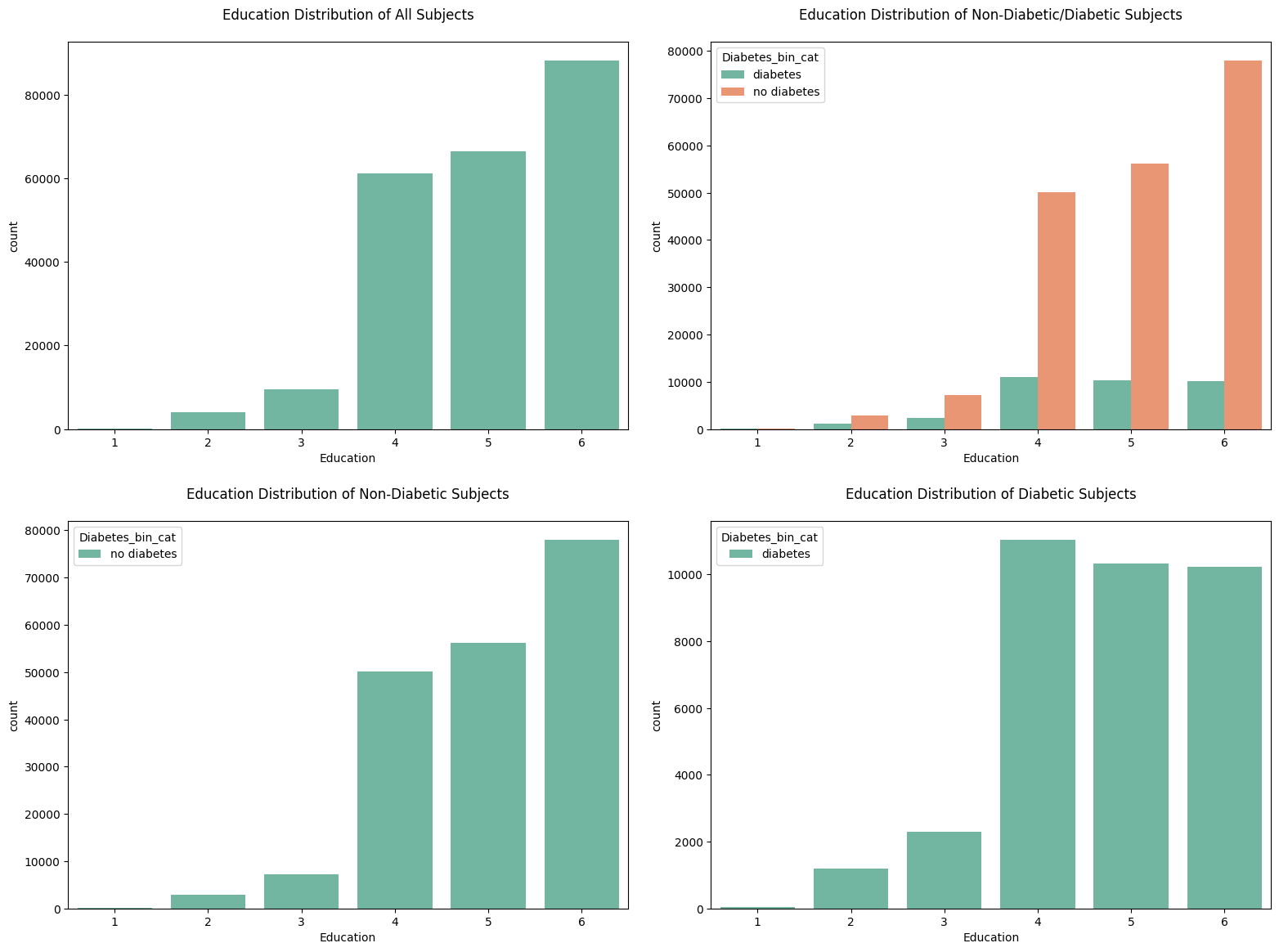 axes[1, 1].set_title('General Health Distribution of Diabetic Subjects', pad=20)