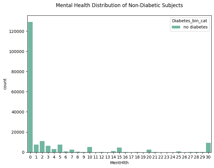 plt.title('Mental Health Distribution of Non-Diabetic Subjects', pad=20)