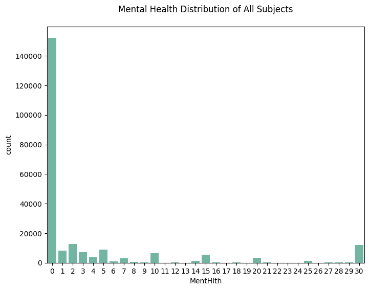 plt.title('Mental Health Distribution of All Subjects', pad=20)