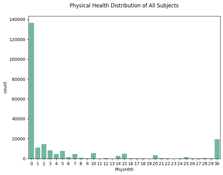 plt.title('Physical Health Distribution of All Subjects', pad=20)