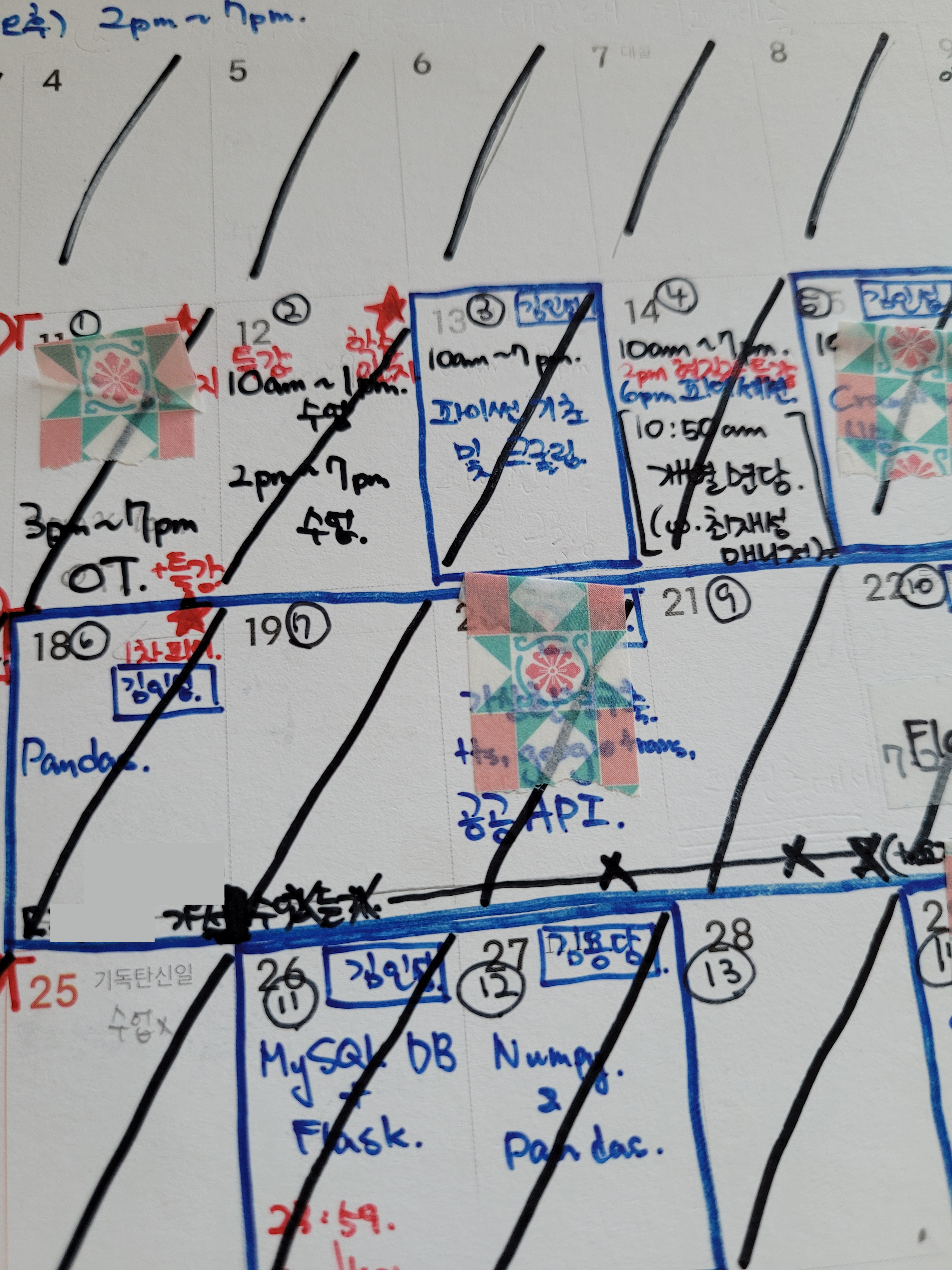 2023년 12월 11일 OT를 기점으로 '전역을 기다리는 병장'처럼(내 모습을 지켜본 아버지의 비유였다.) 달력에 26번째 빗금을 쳤다. 오늘로 27일차.