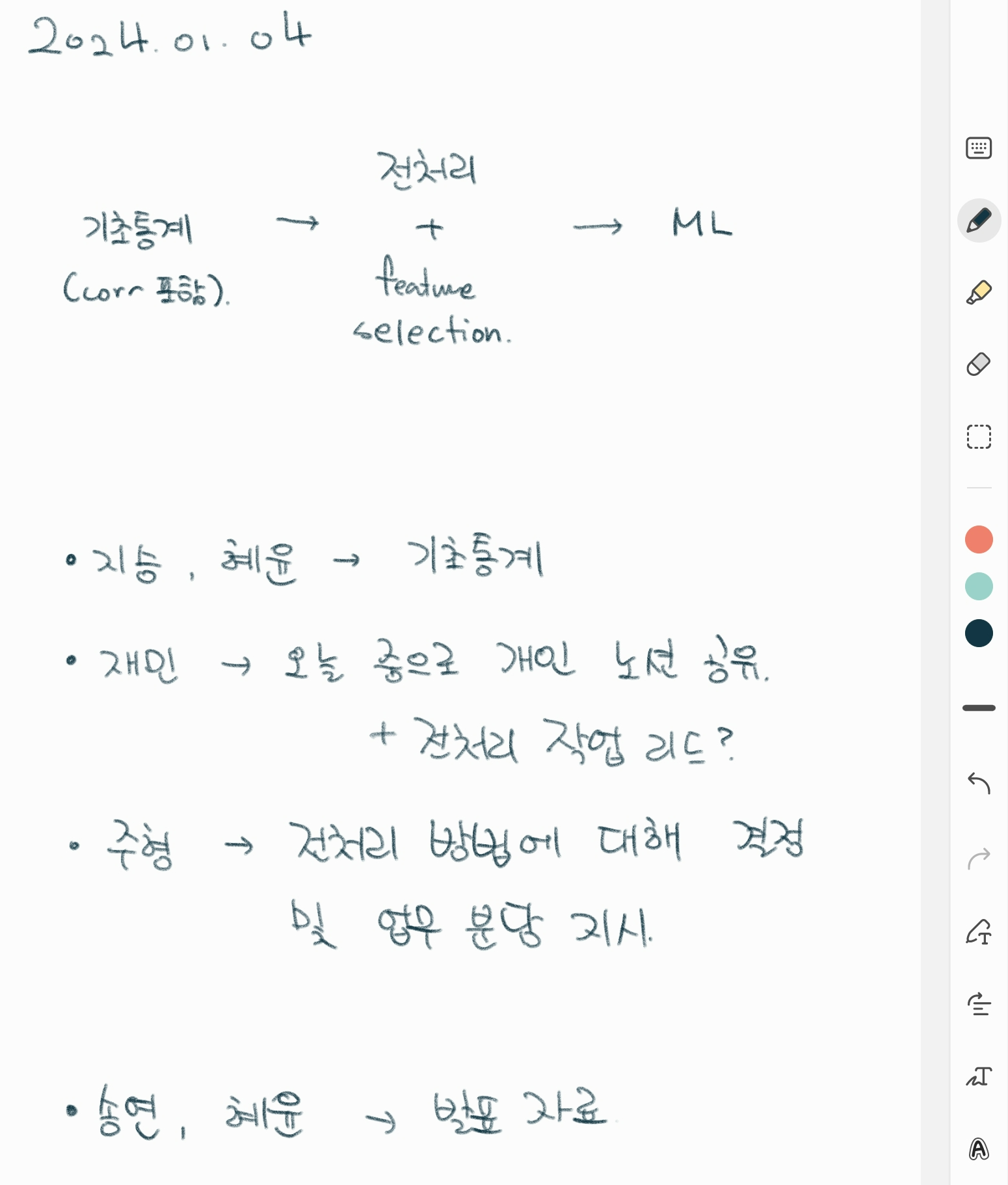 조원들은 전날 강사님의 피드백을 바탕으로 각자 생각하는 방향대로 개별적으로 분석을 진행해보기로 하였다.