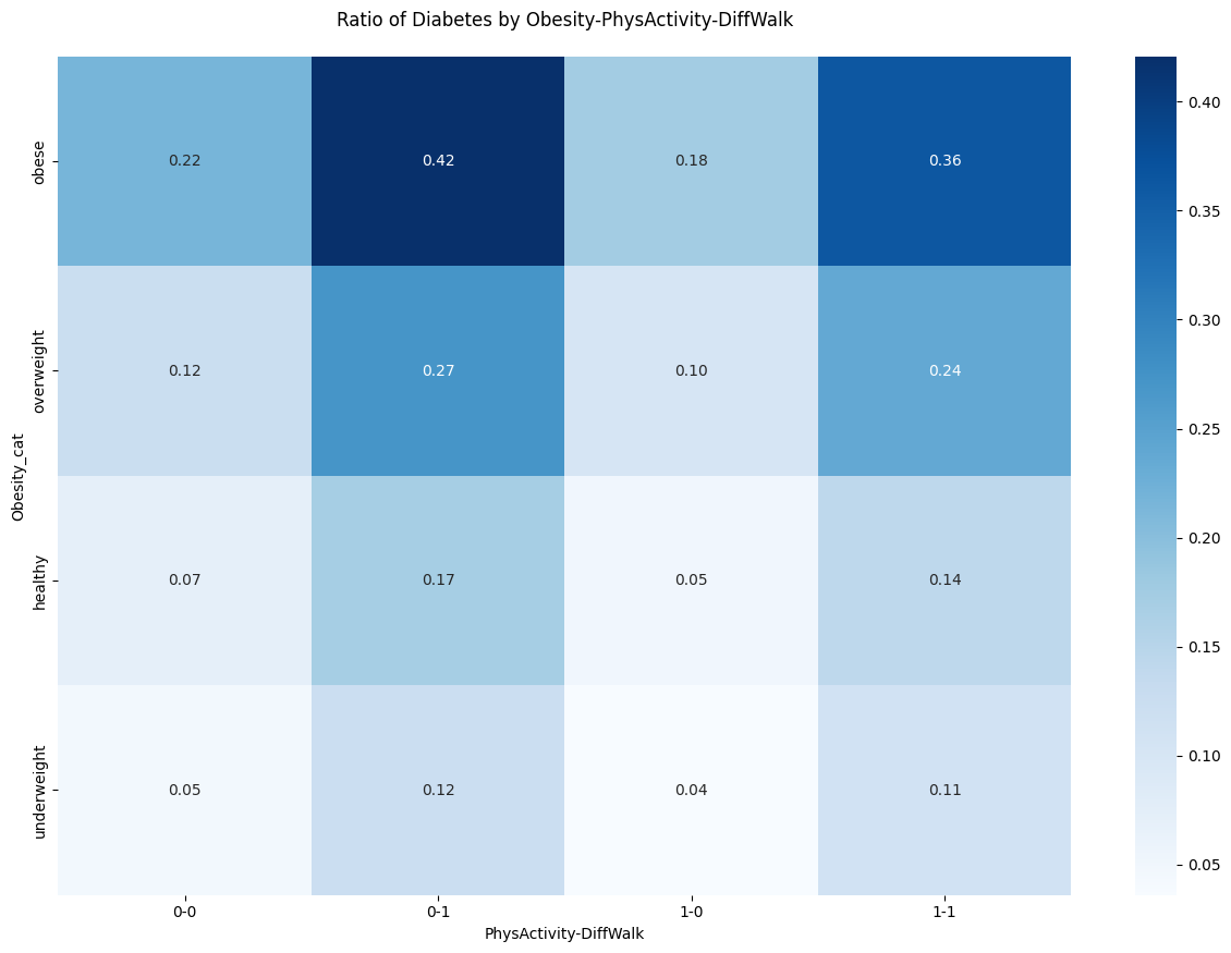 - PhysActivity의 영향보다는 DiffWalk의 영향이 더 큰 것으로 보임