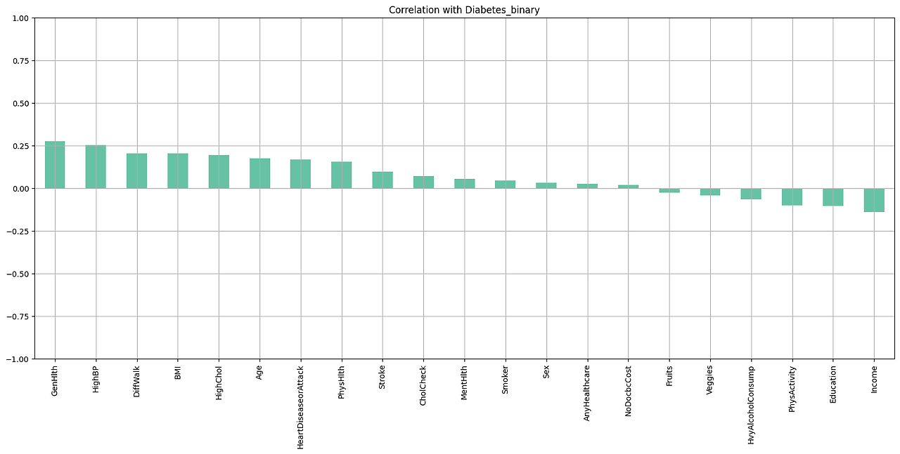 2. 'Stroke'/ 'HeartDiseaseorAttack' 변수는 당뇨병에 대한 설명변수보다는 당뇨병에 의한 결과일 수 있다.